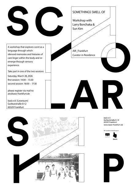 Sun Kim, Larry Bonćhaka and basis e. V. laden alle interessierten Menschen zum partizipativen Workshop SOMETHINGS SMELL OF am Samstag, den 28. März 2026, ein.