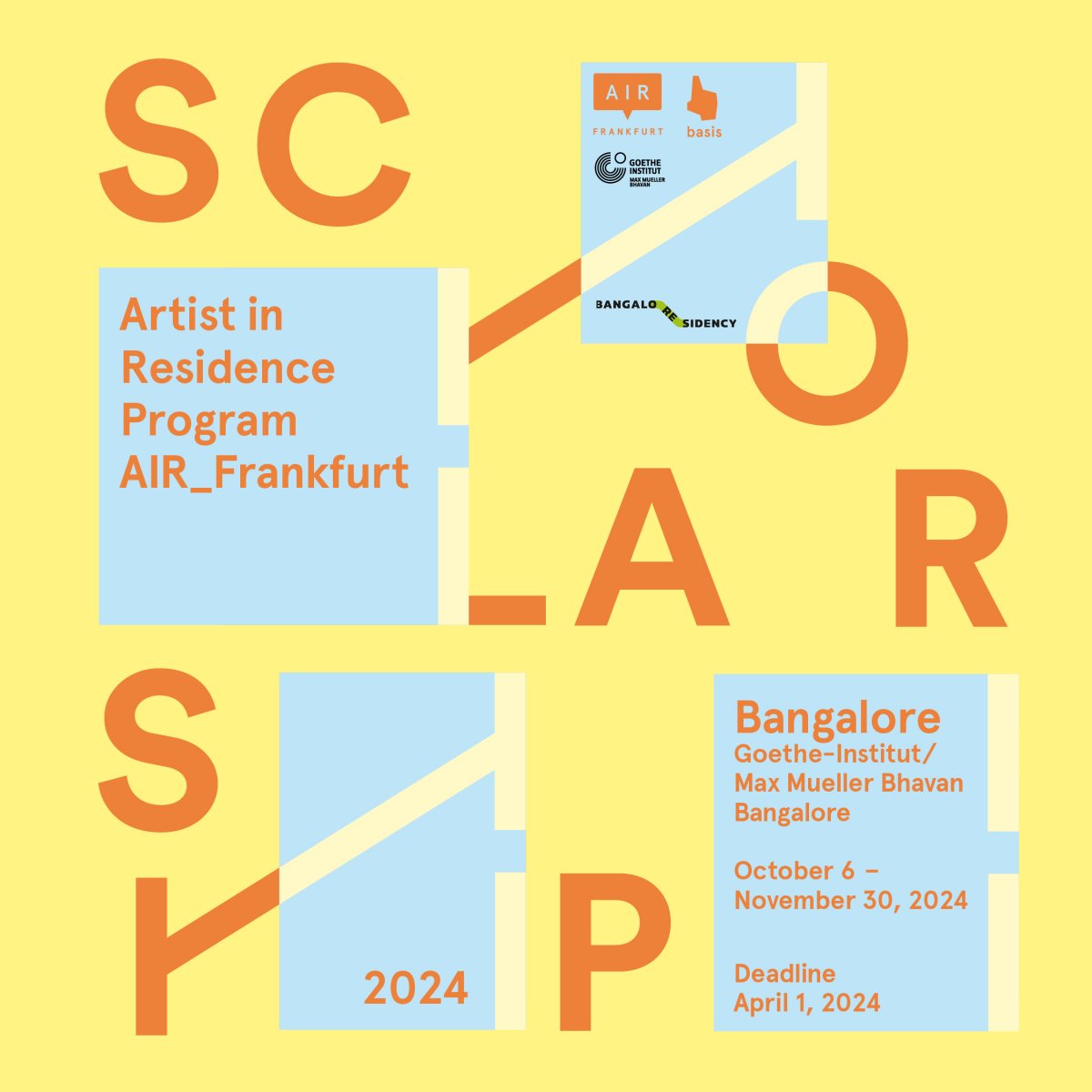 Bitte beachte: Bei der Residency handelt es sich um eine Kooperation von AIR_Frankfurt mit dem bangaloREsidency-Programm des Goethe-Instituts / Max Mueller Bhavan Bangalore. Im Rahmen des Programms sind verschiedene gemeinsame Gruppenaktivitäten mit anderen Stipendiat:innen aus Deutschland vorgesehen.